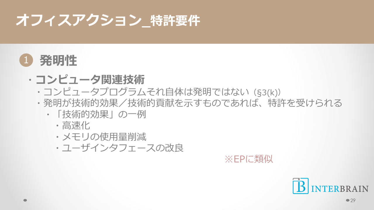 コンピュータプログラムそれ自体は保護対象ではないですが、ハードウェアとの組み合わせを明確にし、発明の技術的効果/技術的貢献を示すことで特許を受けられる可能性があるとされています。