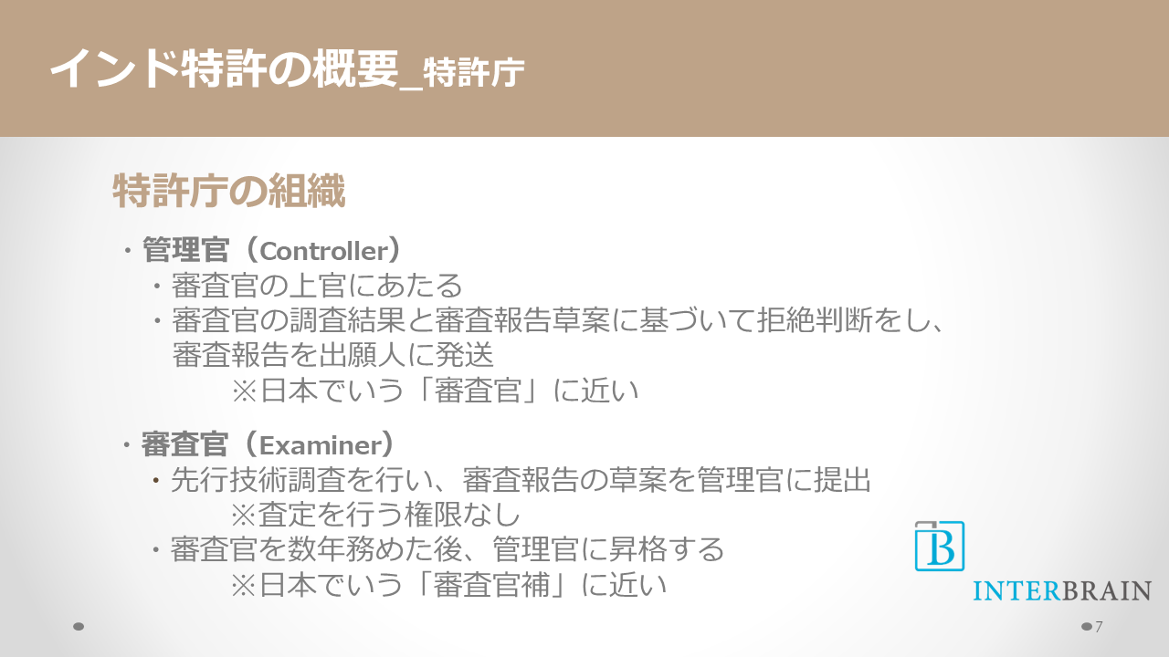 審査官は日本でいう「審査官補」、管理官は日本でいう「審査官」に該当すると言えそうです。