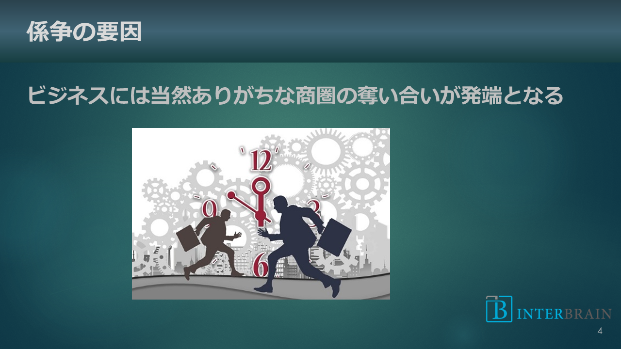 競合社間での商圏の奪い合いから相手方企業に対する憤りや怨恨が発端となる場合も少なくありません。