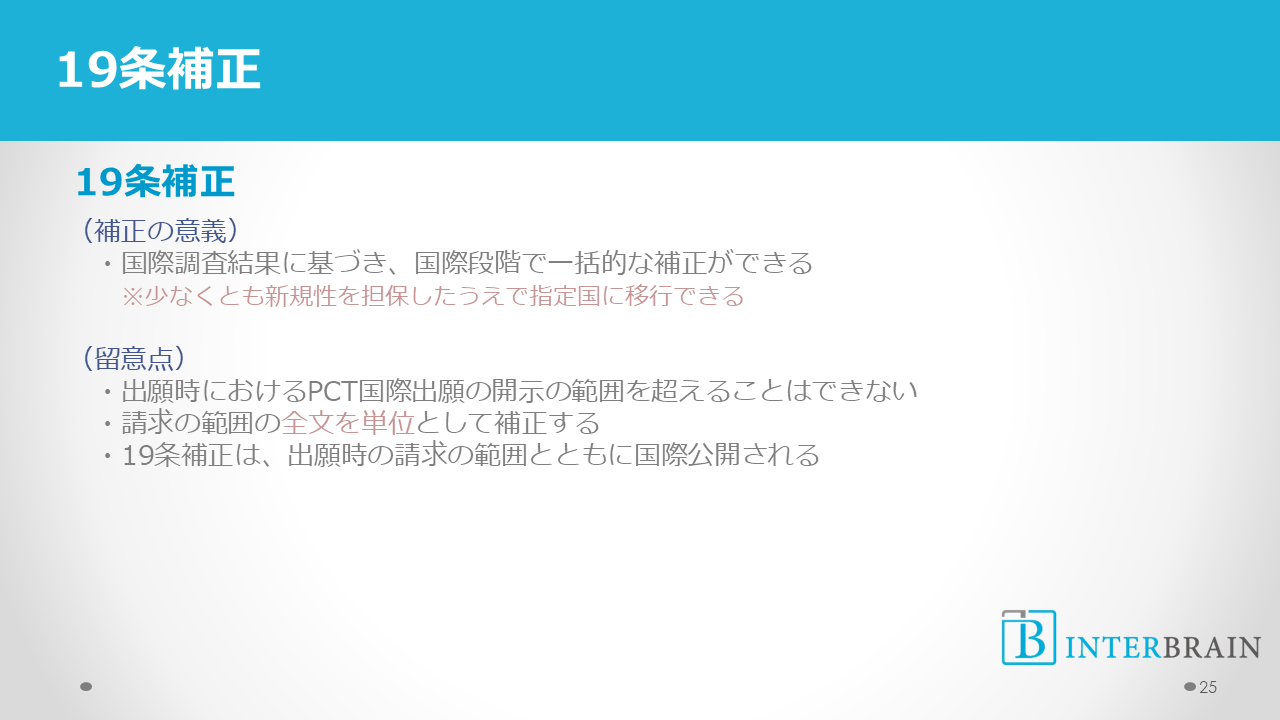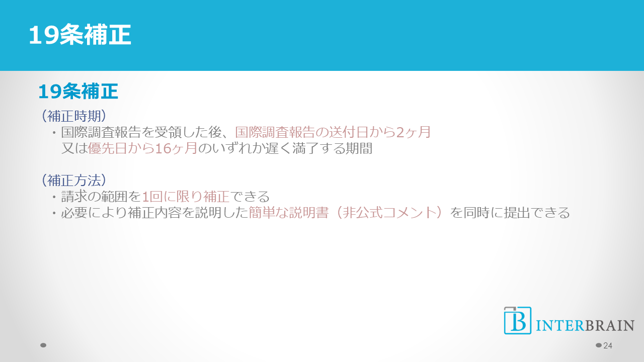 国際調査の結果をみてそのままでは権利化困難と判断した場合、国際段階で一括的に補正を行うことができます。それにより、国内移行後に各国で補正をする手間と費用が節減できます。