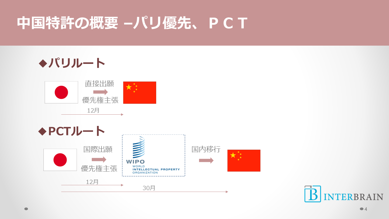 パリルートでは、パリ条約の優先権を主張して中国に直接出願します。