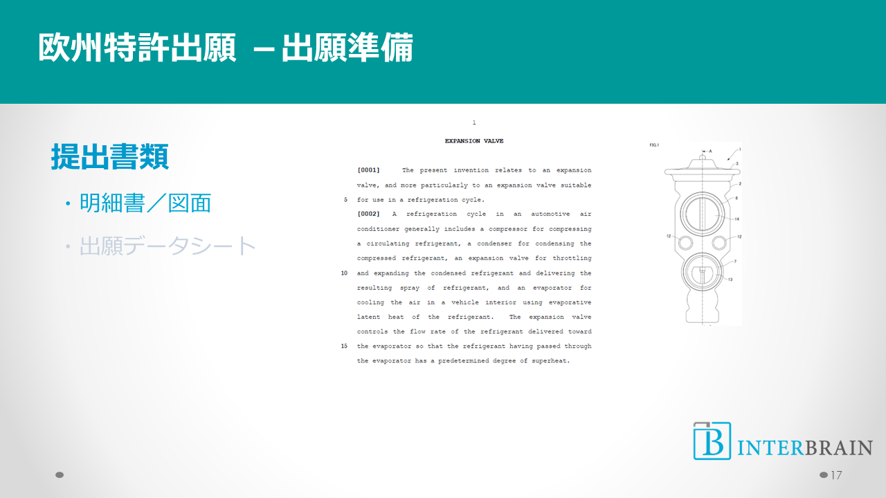 現地代理人は、このデータシートの情報をみてEP願用の願書を作成します。