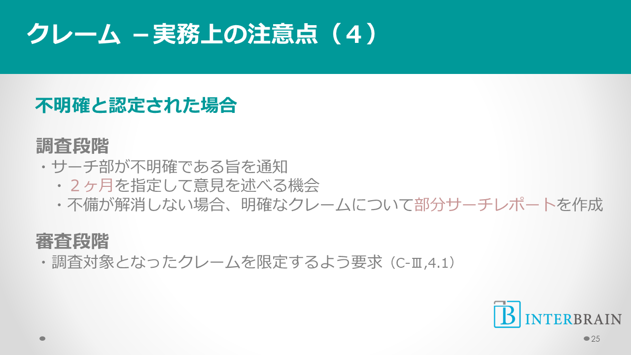 クレームが不明確と認定された場合、このような通知があります。