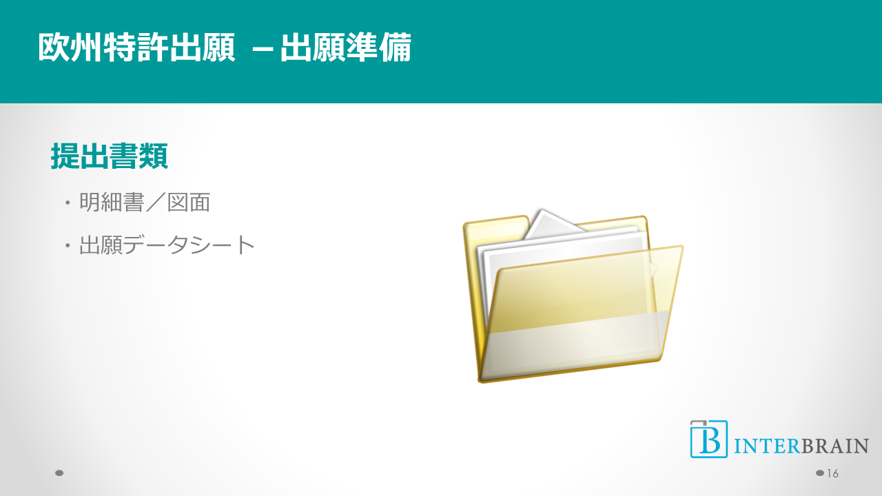 まず出願の準備です。現地代理人(欧州特許弁理士)へ送る資料(データ)を用意します。