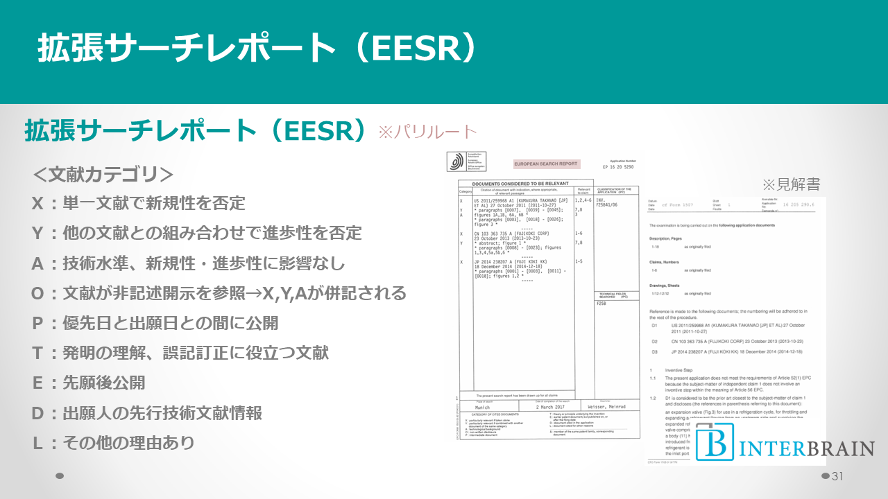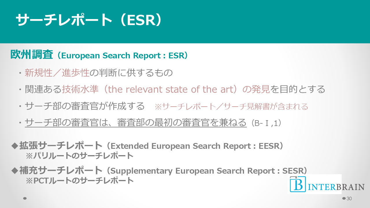 パリルートで出願した場合の「拡張サーチレポート(EESR)」と、PCTルートで出願した場合の「補充サーチレポート(SESR)」の2種類あります。
