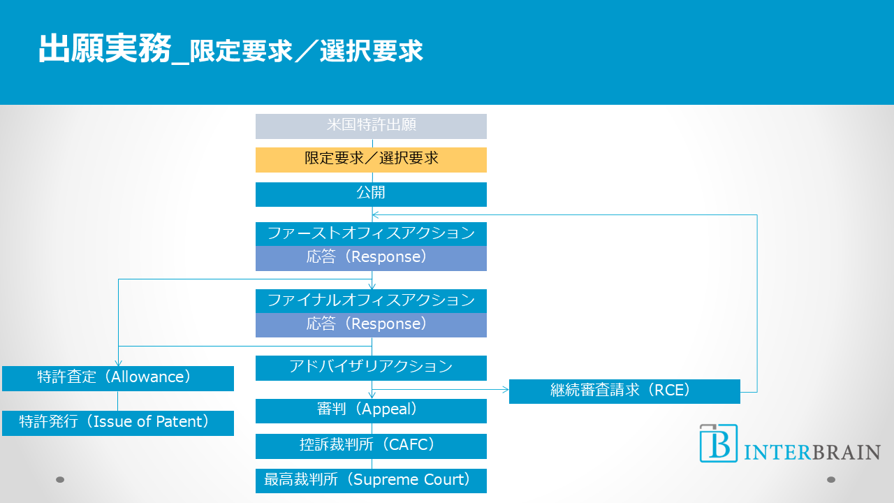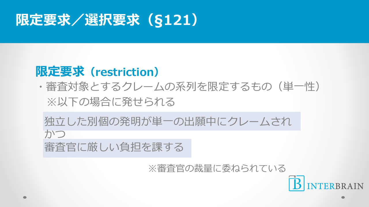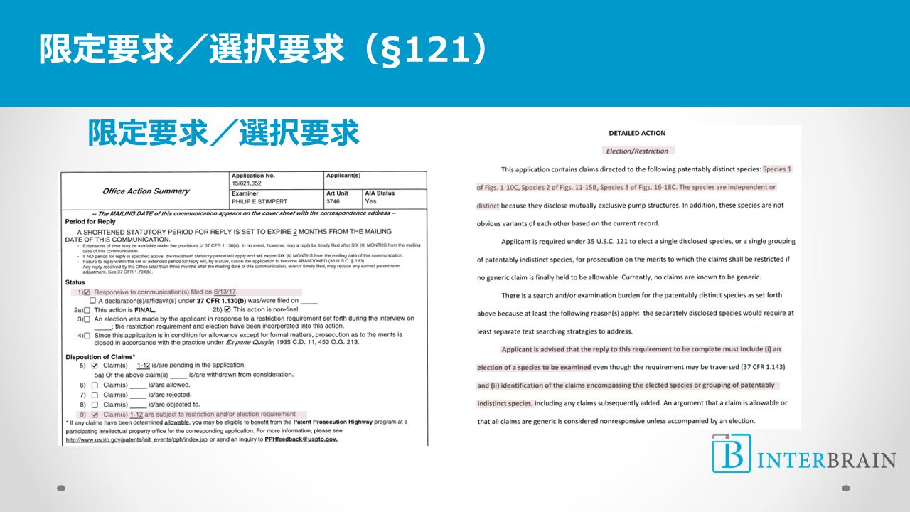 特許が受けられる場合、限定要求は撤回され、審査官による種クレームの再併合がなされます(MPEP821.04)。