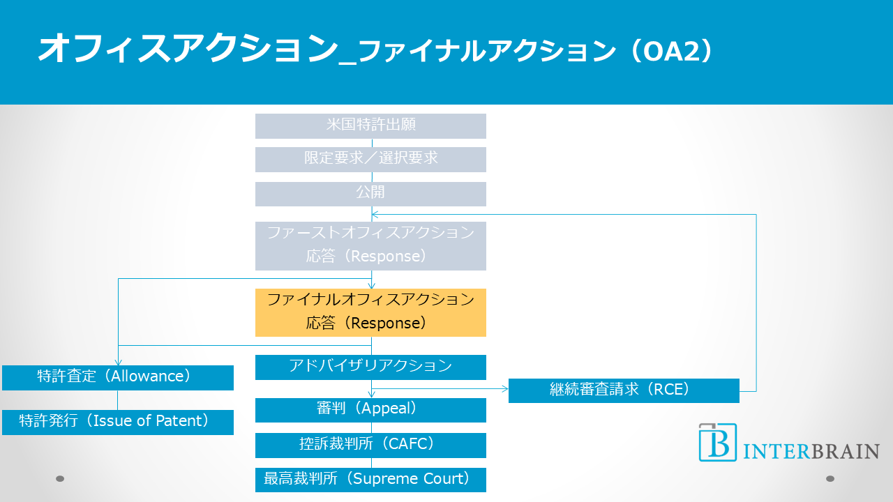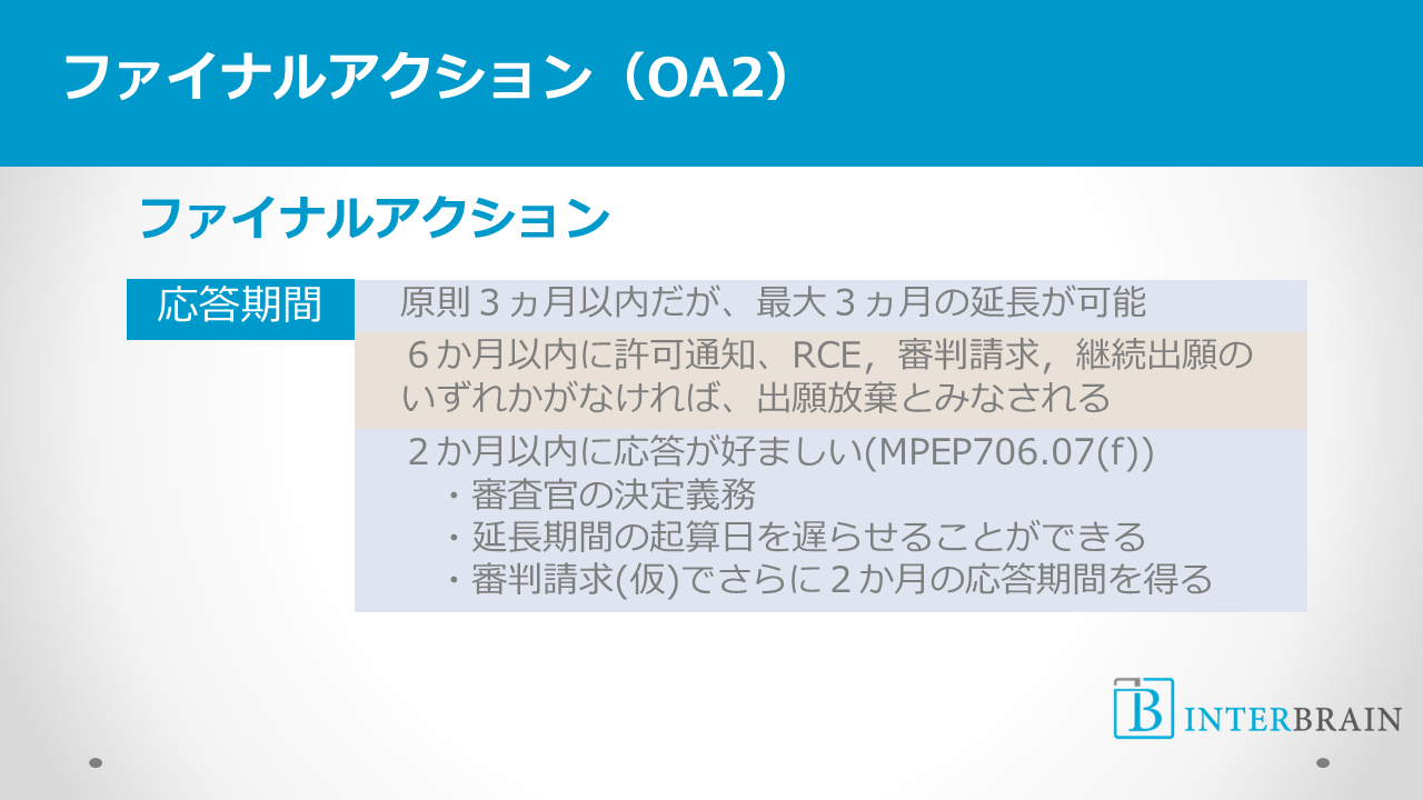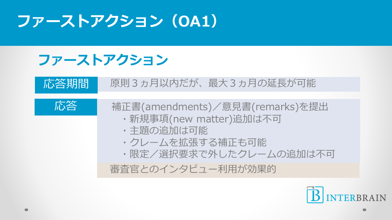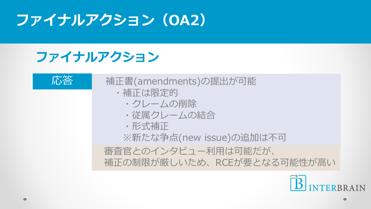 ファイナルアクションは日本でいう「最後の拒絶理由通知」よりも補正要件が厳しい。