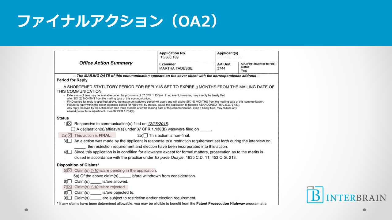 ファーストアクションで審査官の心証が覆らなかった場合、ファイナルアクションが出されます。