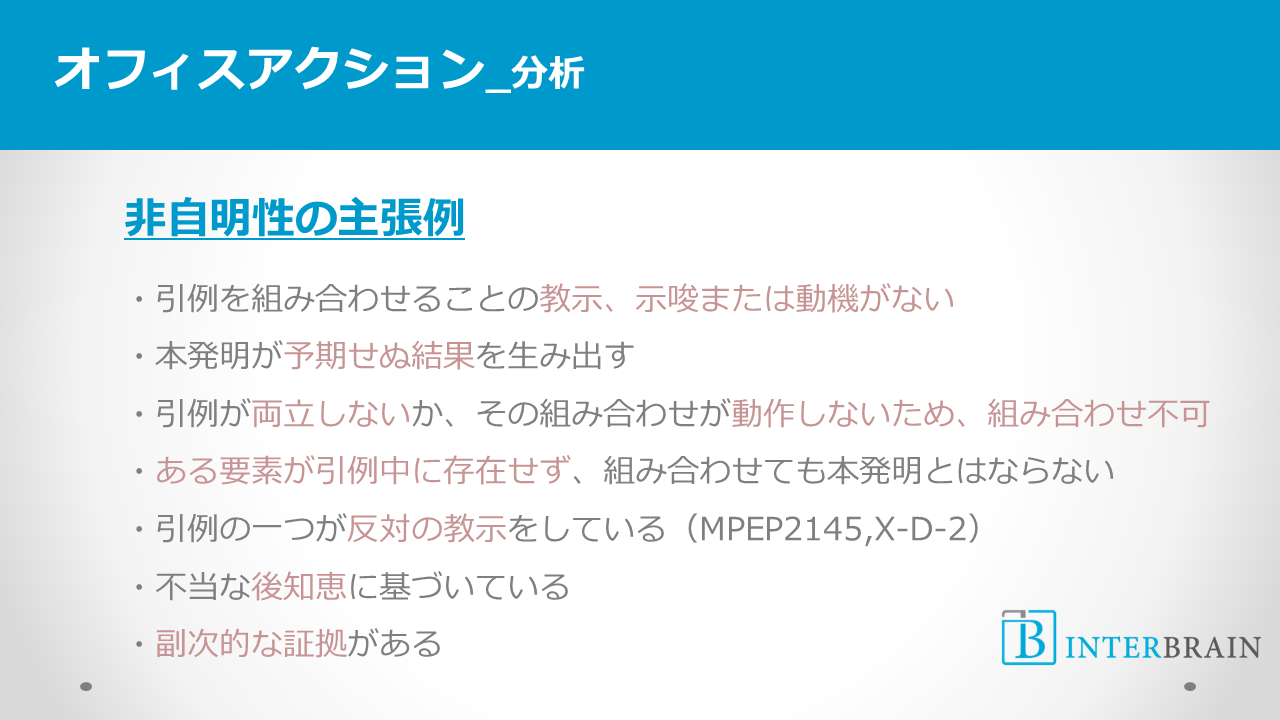 非自明性で拒絶されたとき、このような主張ができないか検討します。