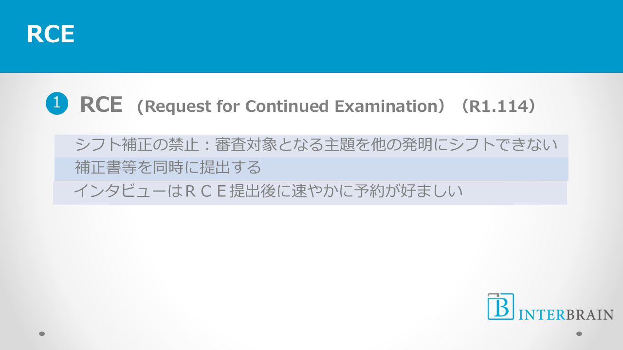 特によく利用されるのがRCEです。補正を前提とした審査の仕切り直しです。