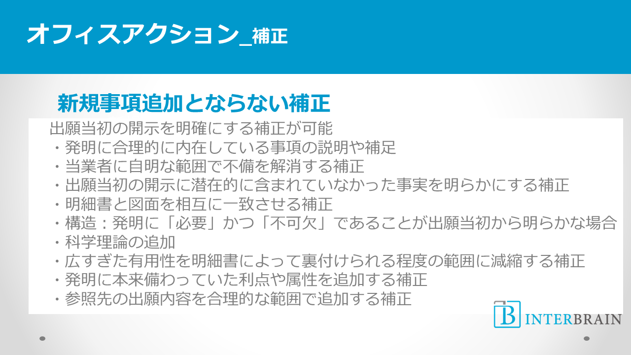 審査官の指摘に基づいて図面とその説明を追加するなど、新規事項を追加せざるを得ない場合に行います。