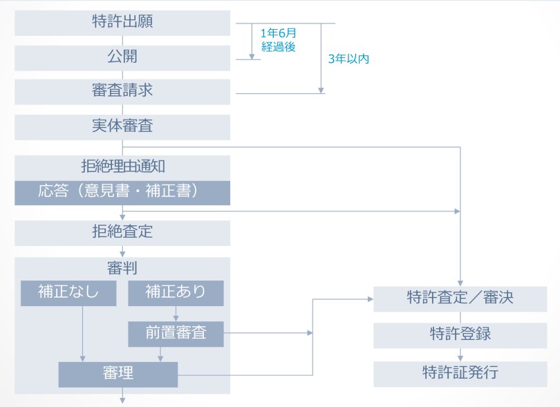 出願から3年以内に審査請求をすることで、実体的要件(新規性、進歩性等)に関する審査が開始されます。