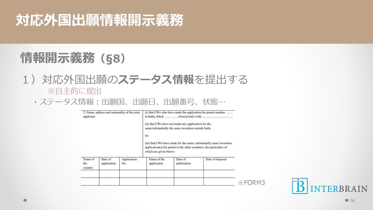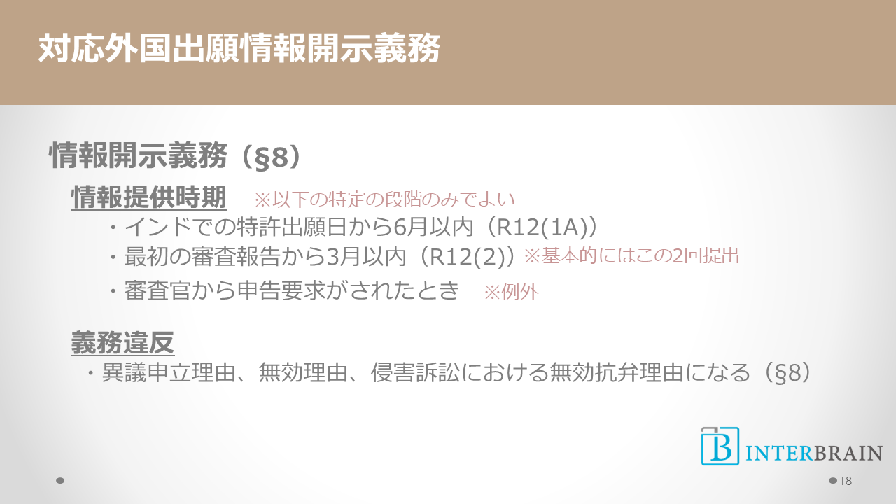 対応外国出願(ファミリー出願)に関して情報開示の義務があります。