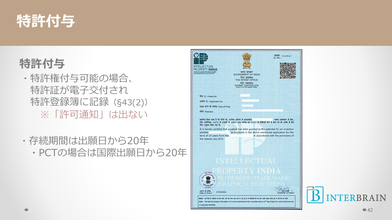 特許になると、特許証が交付されます。