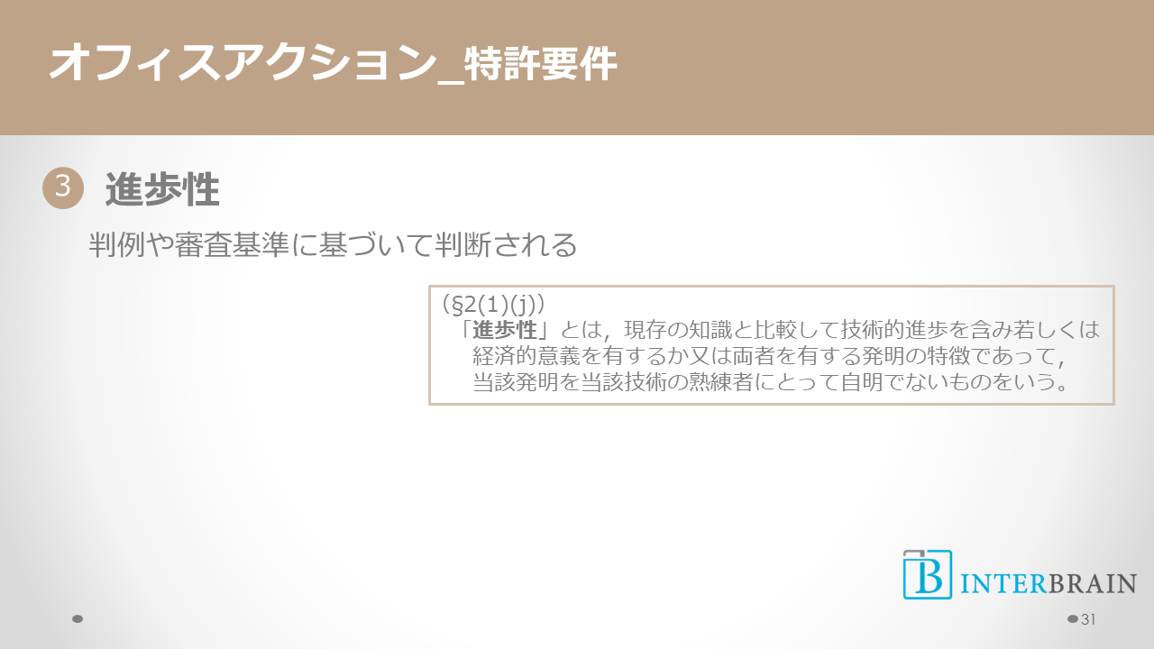 新規性/進歩性についてはこのとおり。発明性の概念に含まれていると考えられます。