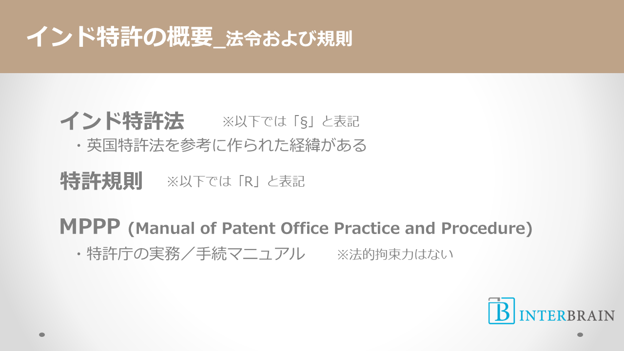 インドにも特許法および規則のほか、特許庁の実務マニュアル(審査基準のようなもの)があります。