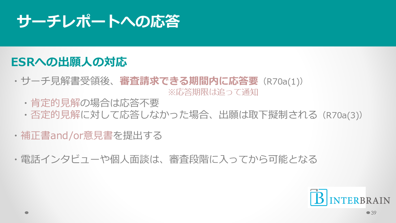 ESRは実質的に第1回目の審査結果のようなものであるため、十分な対応が必要です。