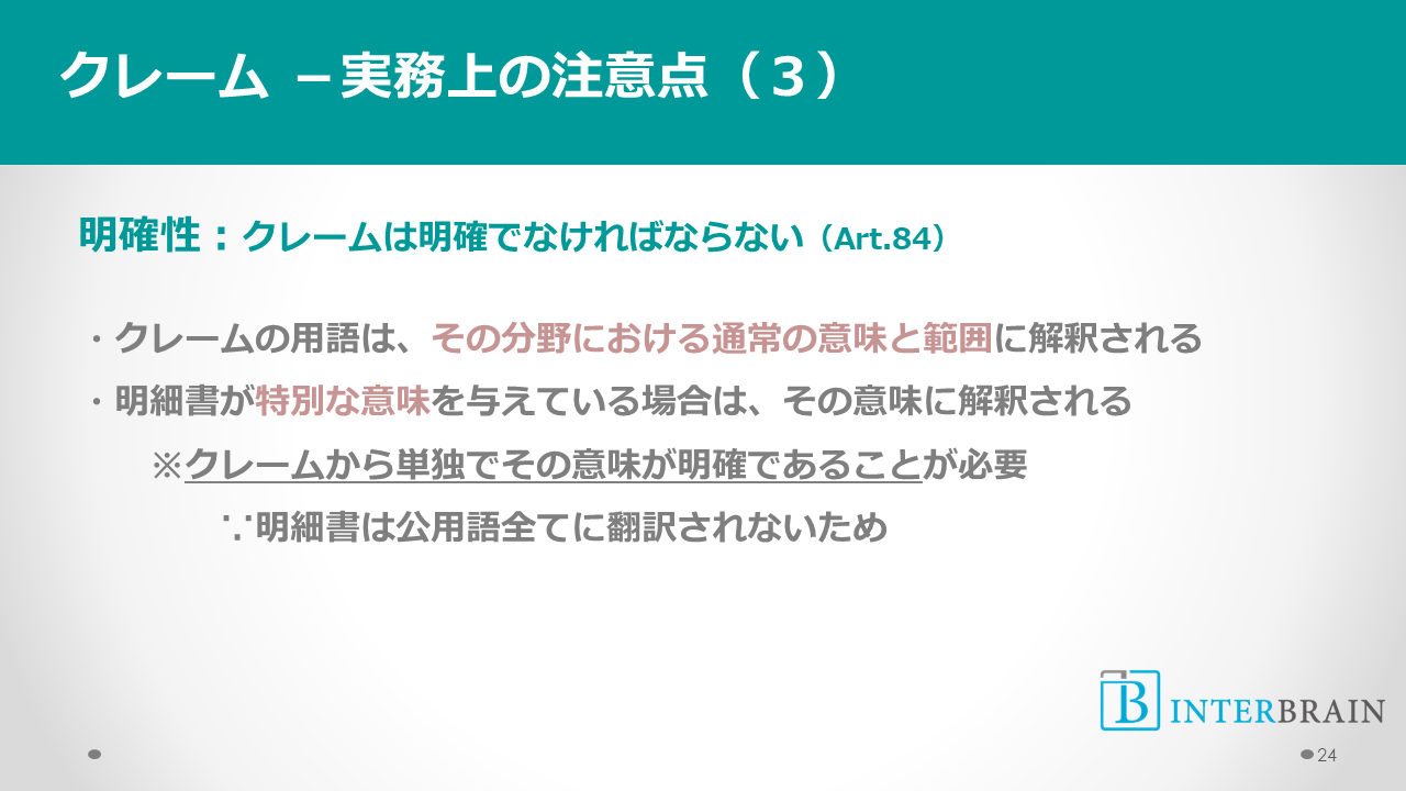 クレームと明細書との対応関係についても日本より厳しい。
