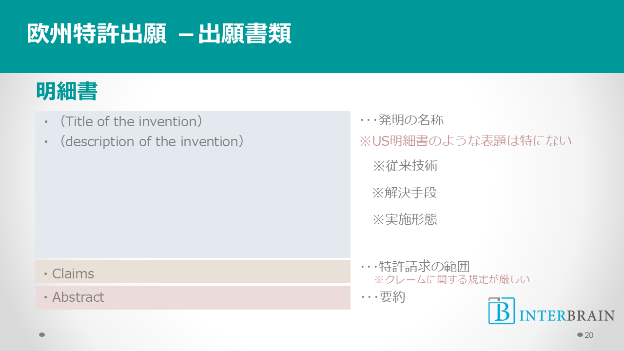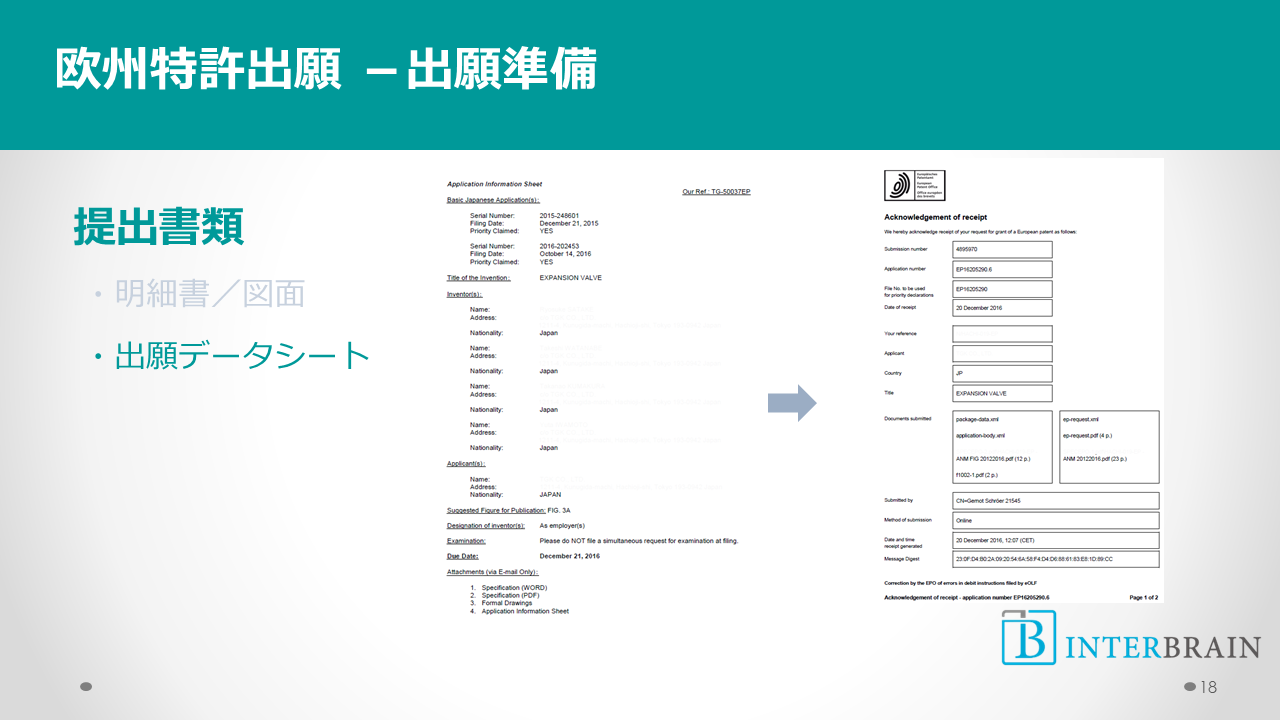 現地代理人は、このデータシートの情報をみてEP願用の願書を作成します。