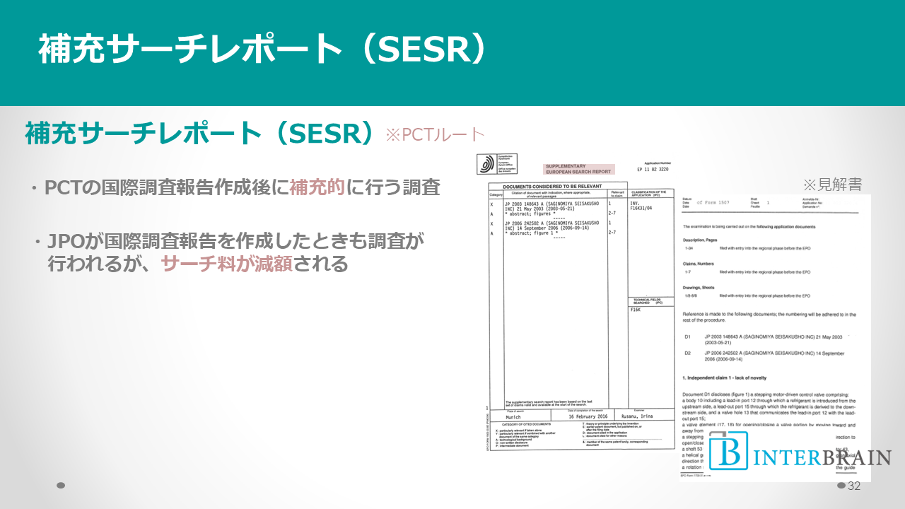パリルートで出願した場合の「拡張サーチレポート(EESR)」と、PCTルートで出願した場合の「補充サーチレポート(SESR)」の2種類あります。